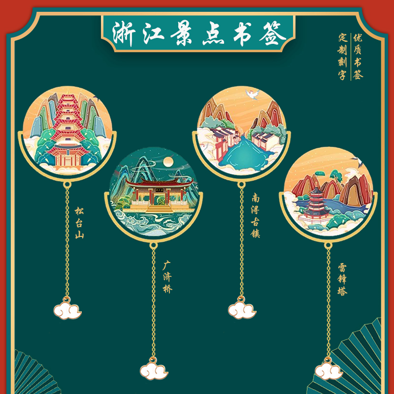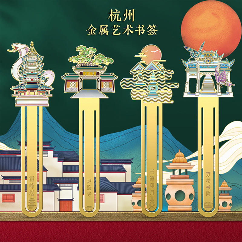 浙江杭州西湖景点金属书签南浔古镇雷峰塔景区创意文化旅游伴手礼