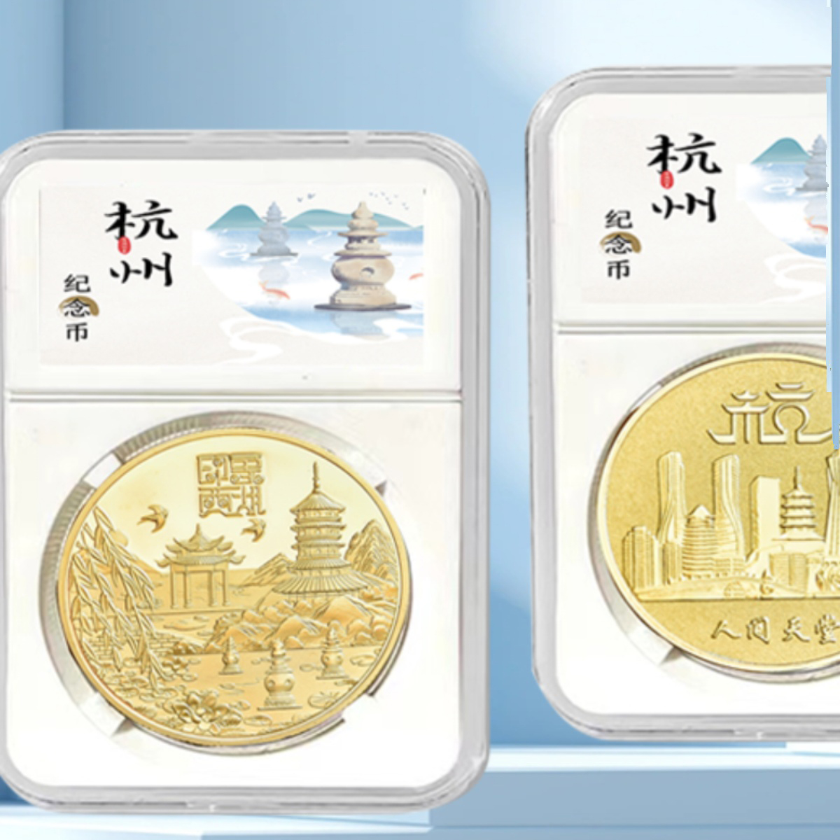 杭州西湖旅游景点文创周边纪念币复古中国风金银硬币礼物品纪念章