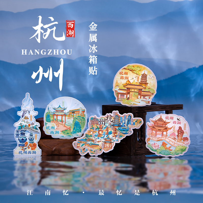 杭州西湖金属冰箱贴西湖十景旅游文化纪念品周边伴手礼