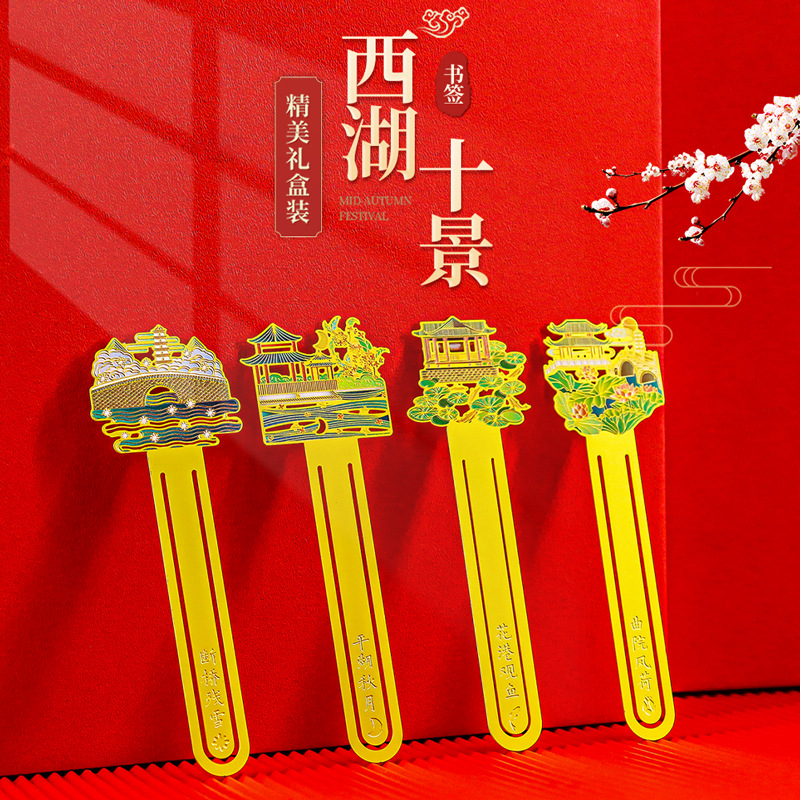 杭州纪念品西湖十景金属书签旅游特色文创伴手礼中国风礼品送老外